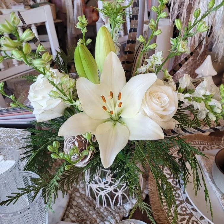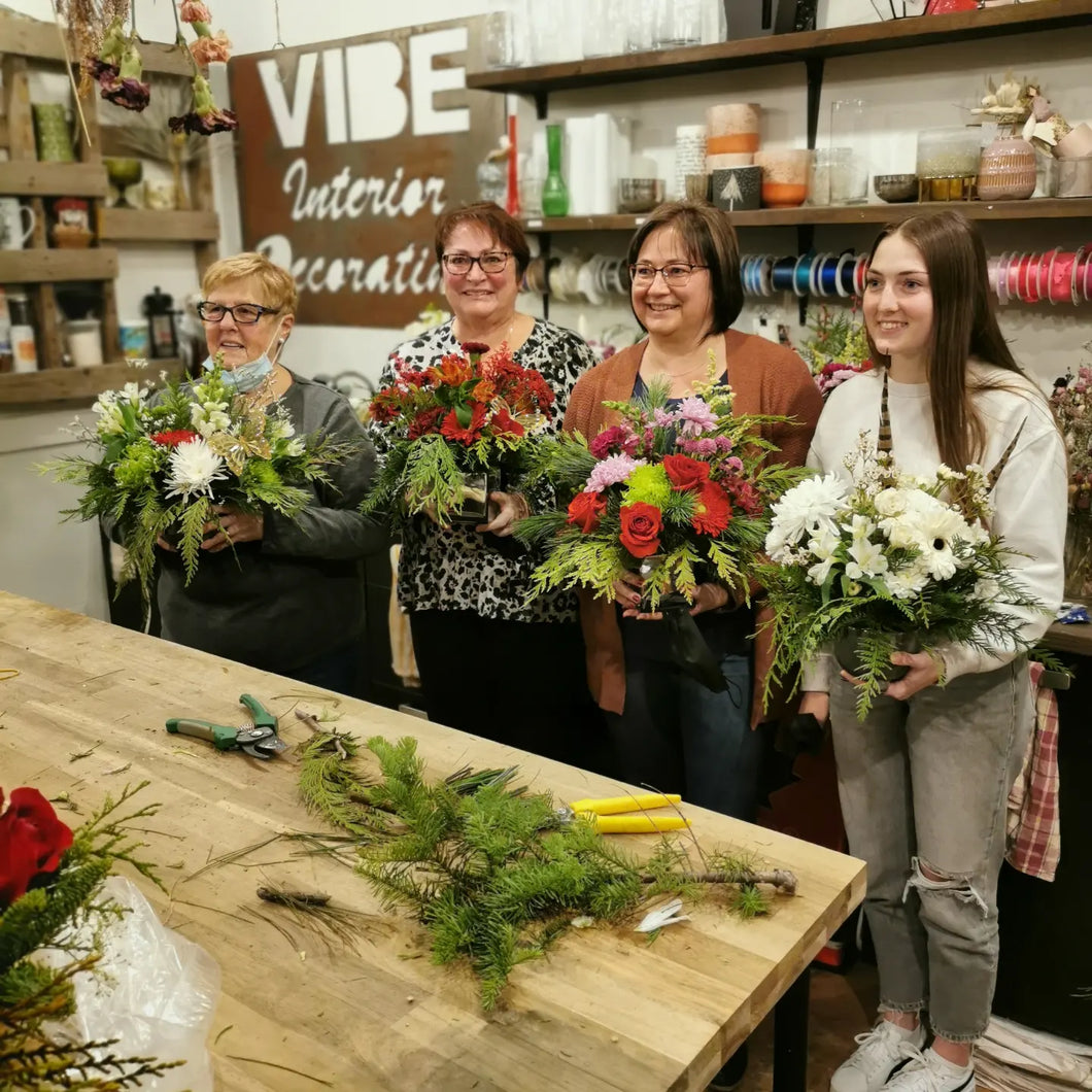 Come create a centerpiece for your dining table or to gift to the Christmas supper host. This is a lovely way to get together with friends and celebrate the holiday season. Loose instruction is provided along with care tips to help you prolong the life of your fresh florals. All supplies and embellishments are included.