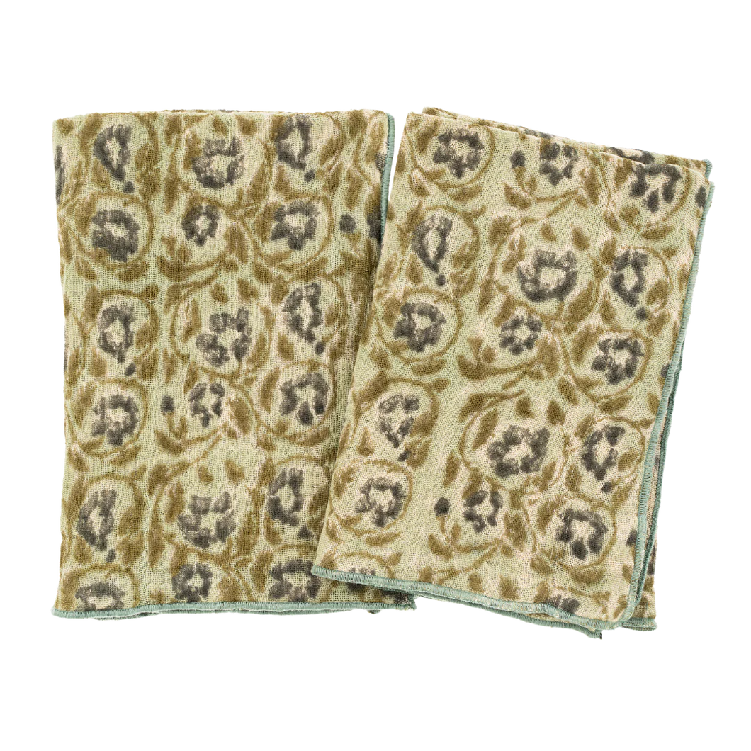 These block printed tea towels display creativity and craftsmanship in every detail. Handmade from double-gauze crinkle cotton with traditional block-printed pattern and over-lock embroidered edges, they infuse the kitchen with artisanal charm while providing practicality for everyday use.