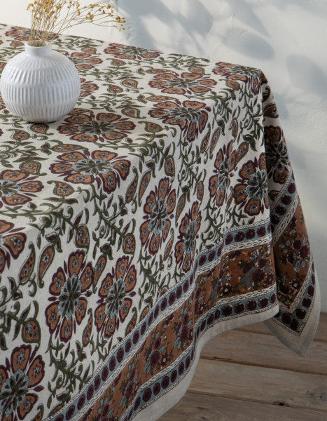 Hand block-printing holds a long and rich history in Indian textiles. It's a skilled craft, shared generation to generation. Each hand carved wooden block is stamped in ink and applied with expertise to the fabric creating complex, interconnected patterns.
